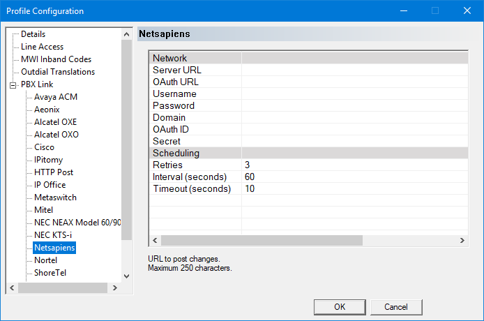 All these setting must be supplied by Netsapiens.