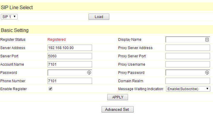 Choose SIP 1. Phones do not support multiple extension number and the SIP line selection is only for configuration of a backup PBX. - Server Address