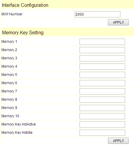Configuration for the MWI button on the phone is via Advanced | Memory Key menu. This is also where you may program any of the memory keys on the phone based on the label the hotel has created. Typically these will be items like room service and the like.