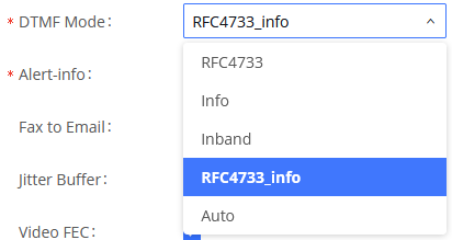 In this example choosing info would cause the DV2000 to fail. The setting should be set to RFC4733_info.