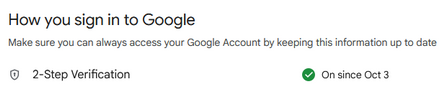 - On that page there should be a portion that is labeled “How you sign in to Google” with a line labeled “2-step verification”.
