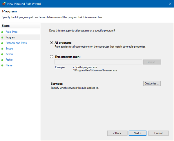 These rules can be added and modified in Windows Control Panel, Windows Defender Firewall located under the Advanced Settings.