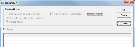 | Use extension as mailbox number | Check this option to use the specified extension number as the mailbox number to create; only valid if the CSV file contains the EXTENSION column. |