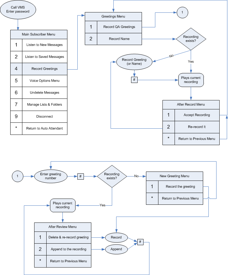 1to record the QA greetings. - As prompted, enter an unused greeting number and press