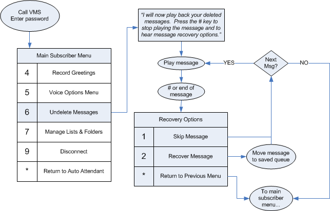 The order of message playback depends on the class of service (COS) assigned to your mailbox (which is managed by the system administrator). By default, messages are played first-in, first-out (FIFO); that is, the oldest message is played first. However, the COS can be configured such that messages are played last-in, first-out (LIFO); that is, the newest message is played first. Whichever order is used, the system will play the first message and then wait for a DTMF response from the subscriber. Once the message has been acted on by the subscriber, the system will proceed to the next message in the queue, repeating this process until all messages have been listened to and acted upon (unless the subscriber backs out of the message review by pressing the * key or by disconnecting).