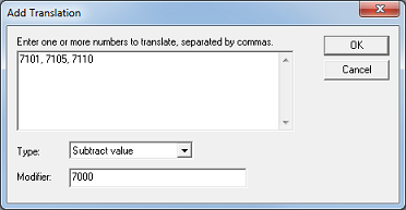 You can add a range of translations by simply entering the starting value, followed by a dash, followed by the ending value. Ranges can be interspersed with individual entries, as shown in the figure below: