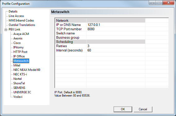 | TCP Port number | 8080 | Do not change from the default value 8080 unless the port for this interface has been changed on the PBX. |