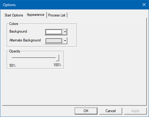 The appearance tab, shown below, allows you to change the background colors used in the right pane of the main window.