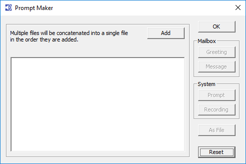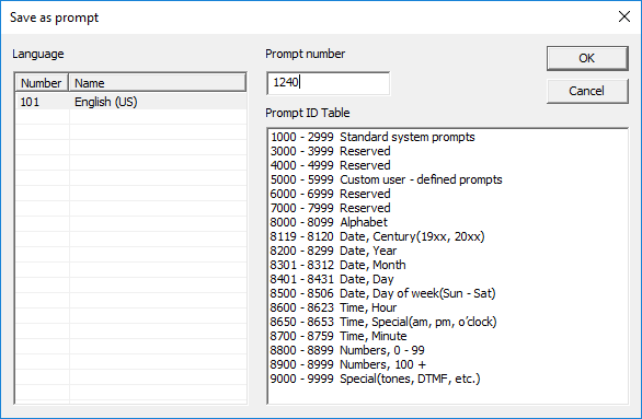 Using the Microsoft Text-to-speech engine and a CSV file containing prompt numbers and scripts will generate custom language prompts. - Create mailbox greetings from CSV file
