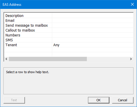 | Tenant | This address will only be notified if the caller's mailbox exists within the given tenant. If Any is specified then it will be ignored and any mailbox from any tenant will cause an alert. This is best for multiple tenant sites allowing only specific staff to be alerted rather than everybody on the property. |