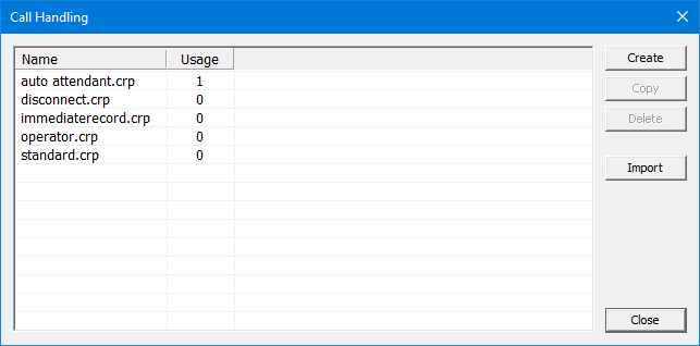 The above figure shows the dialog for editing a call handling plan, with the Standard call handling plan loaded.