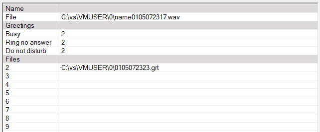 Each greeting is can be assigned by entering the file number below. If a number is specified and the file cannot be found the system will play a default greeting.